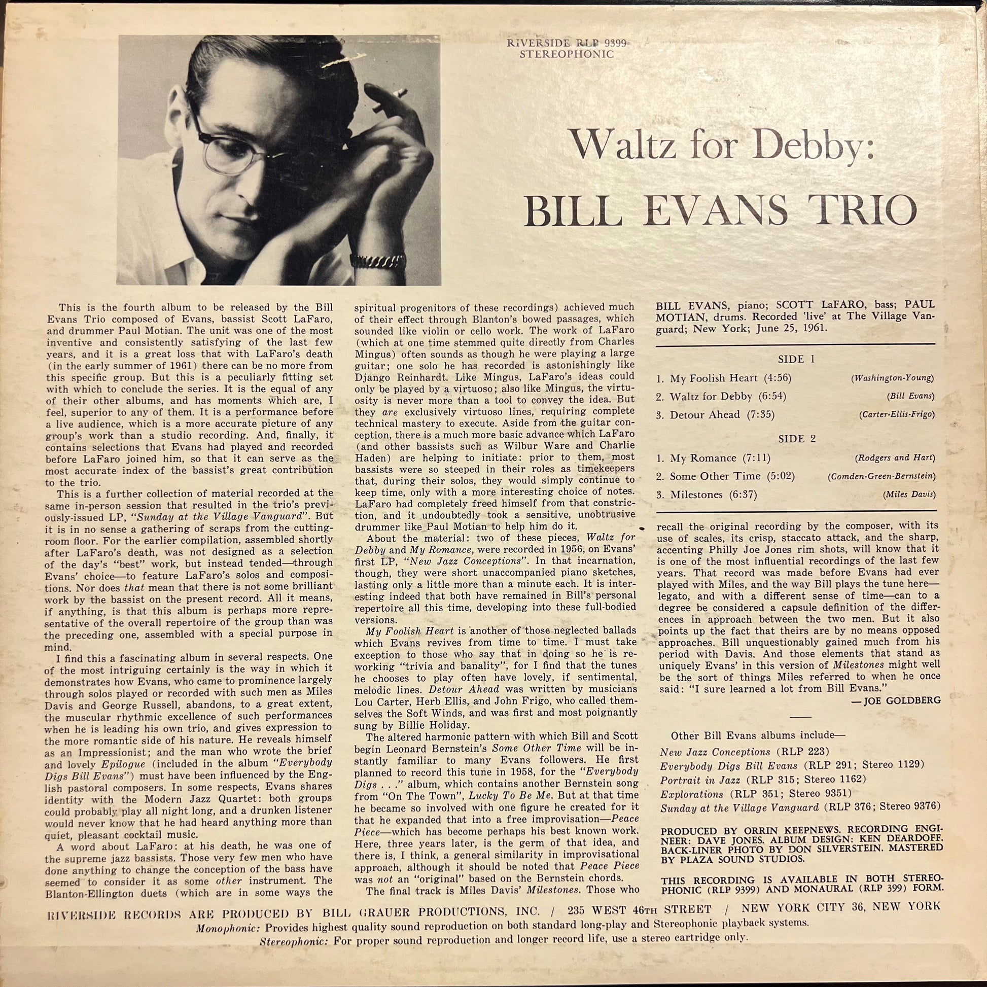 Bill Evans Trio - Waltz for Deby [USED VINYL]