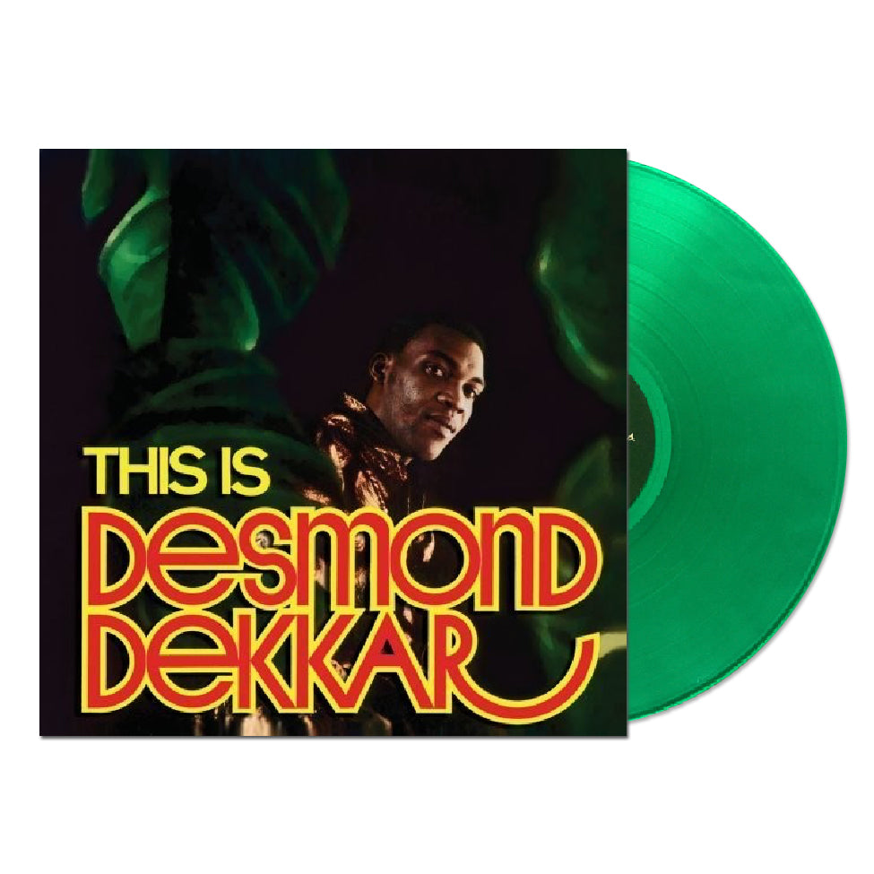 [OUT OF PRINT] Trojan Records Limited Edition Green color vinyl reissue / Pressed in 2022 / A renowned writer who again became a British star when the Specials covered This Is Desmond Dekker's classic opener, "0.0.7 (Shanty Town)" (a 1967 U.K. number 14 later made famous in The Harder They Come soundtrack), this presents a wealth of his finest compositions, all set to the soothing midtempo style so prominent in later-'60s Kingston. Relaxing but never mellow, and often addressing the island's "Rude Boy" gang violence and poverty, Dekker uses his pleasant but deep, high-ranged voice and languorous timing to complement the swaying, offbeat rhythms. Dekker may have given the world Bob Marley (by introducing his nobody coworker Robert to his producer in 1961), but his own canon remains significant too, and this is a highly agreeable slice at a great value. Desmond Dekker and the Aces had already built up a considerable head of steam prior to 1969, the year of their international full-length debut. Already superstars in their native Jamaica, Dekker and crew had compiled their hit singles on three separate sets (which were released in '67, '68, and '69 respectively), and these were in turn brought together on one long-player for international release entitled THIS IS DESMOND DEKKER. In addition to the seminal rocksteady masterpiece "007 (Shanty Town)," the album contains the hits "Sabatoge," "Beautiful and Dangerous," and "Unity," among others. A classic back to front, and a cornerstone of any reggae library, the album rivals any of the numerous Dekker hits compilations on the market.
