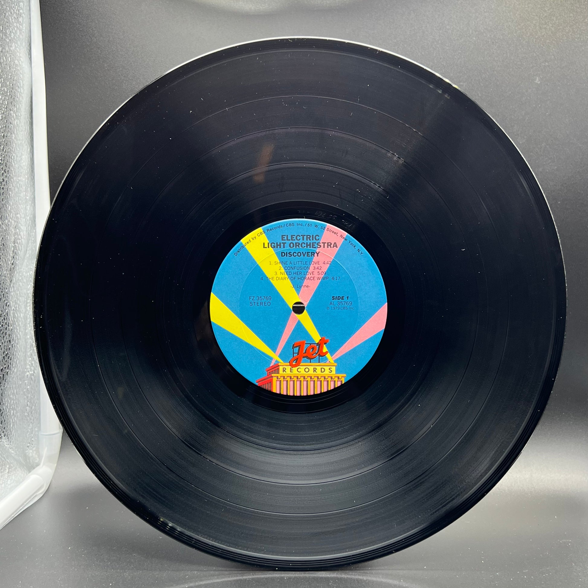 Artwork: Very Good + / Media: Very Good + + / Remarkably clean copy with Jet Label / 1979 Terre Haute Pressing / Gatefold / Includes original Inner sleeve / Electric Light Orchestra continued on their winning Top 40 ways with the release of Discovery. Now pared down to the basic four-piece unit, Jeff Lynne continued to dominate the band and they still got their hits (this time around it was the smash "Don't Bring Me Down"). Elsewhere on the disc there was, of note, "Last Train to London" and "Confusion." Though Discovery charted well, it was becoming obvious that ELO were starting to run themselves out of useful Beatles hooks with which to fuel their hit-making machine. -Allmusic.com