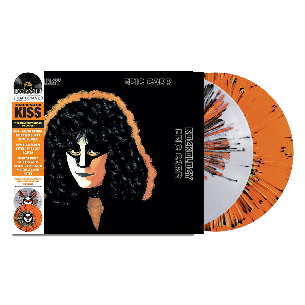 Eric Carr remained a member of KISS until his death from heart cancer. He took up the persona of "The Fox" and was one of the fan favorites. Rockology is Eric Carr's only solo record which features former KISS guitarist Bruce Kulick. This package was designed and mastered along with Loretta Carr (Eric's sister) to fall in line as the 5th KISS solo album. The cover is Eric in his "Fox" make up, the 12" by 24" poster is in the same style of the original 4 solo KISS releases. Printed inner sleeves include never before seen photos & liner notes. The vinyl is an orange/clear/black splatter with "Fox" record labels. The 2nd LP features 5 never before released demo tracks. All extras are noted on the packaging OBI side spine. This is a MUST for fans/collectors of KISS. 1st Orange, Clear & Black Swirl & 2nd Black, Clear & Orange Swirl Color Vinyl and one 12" by 24" lobby poster