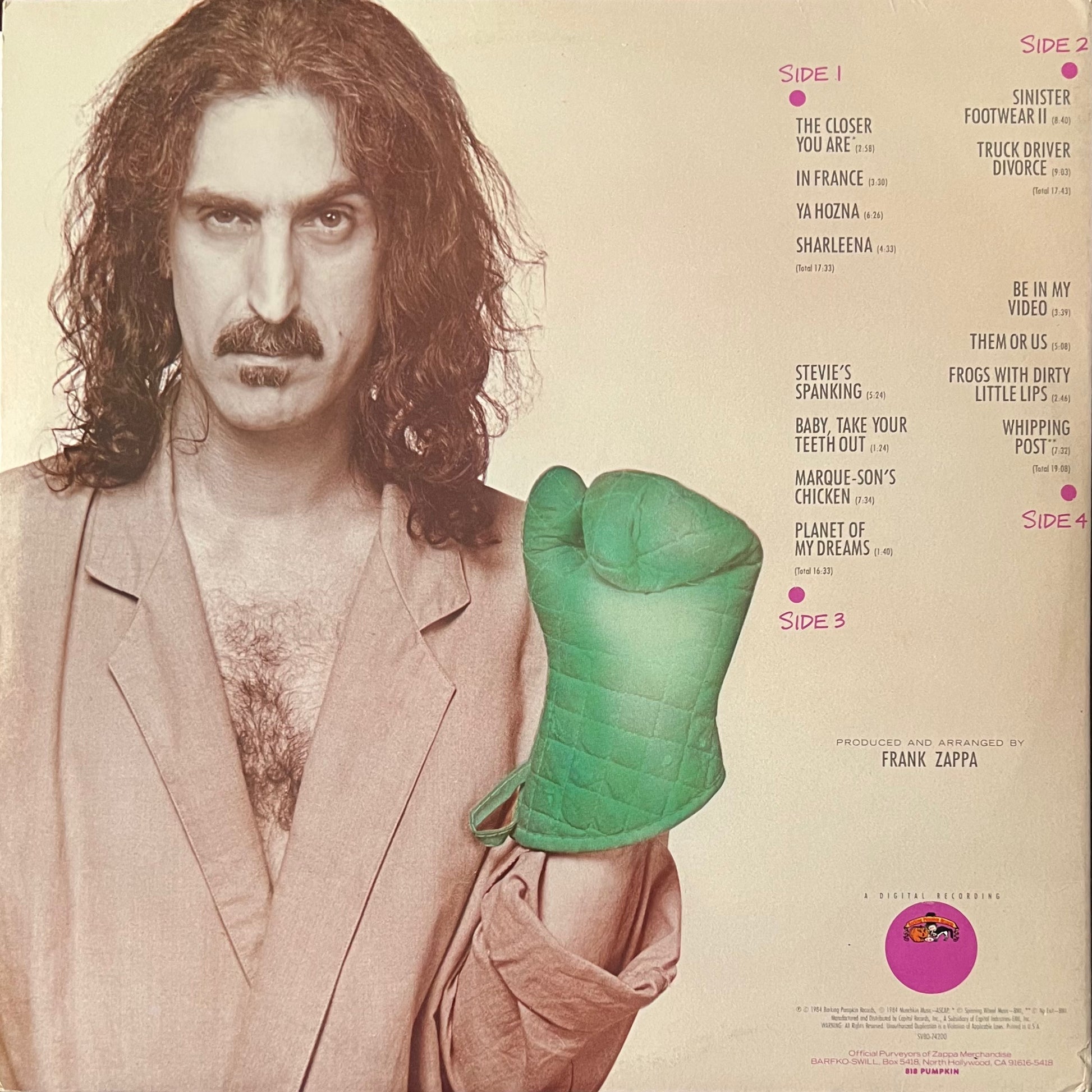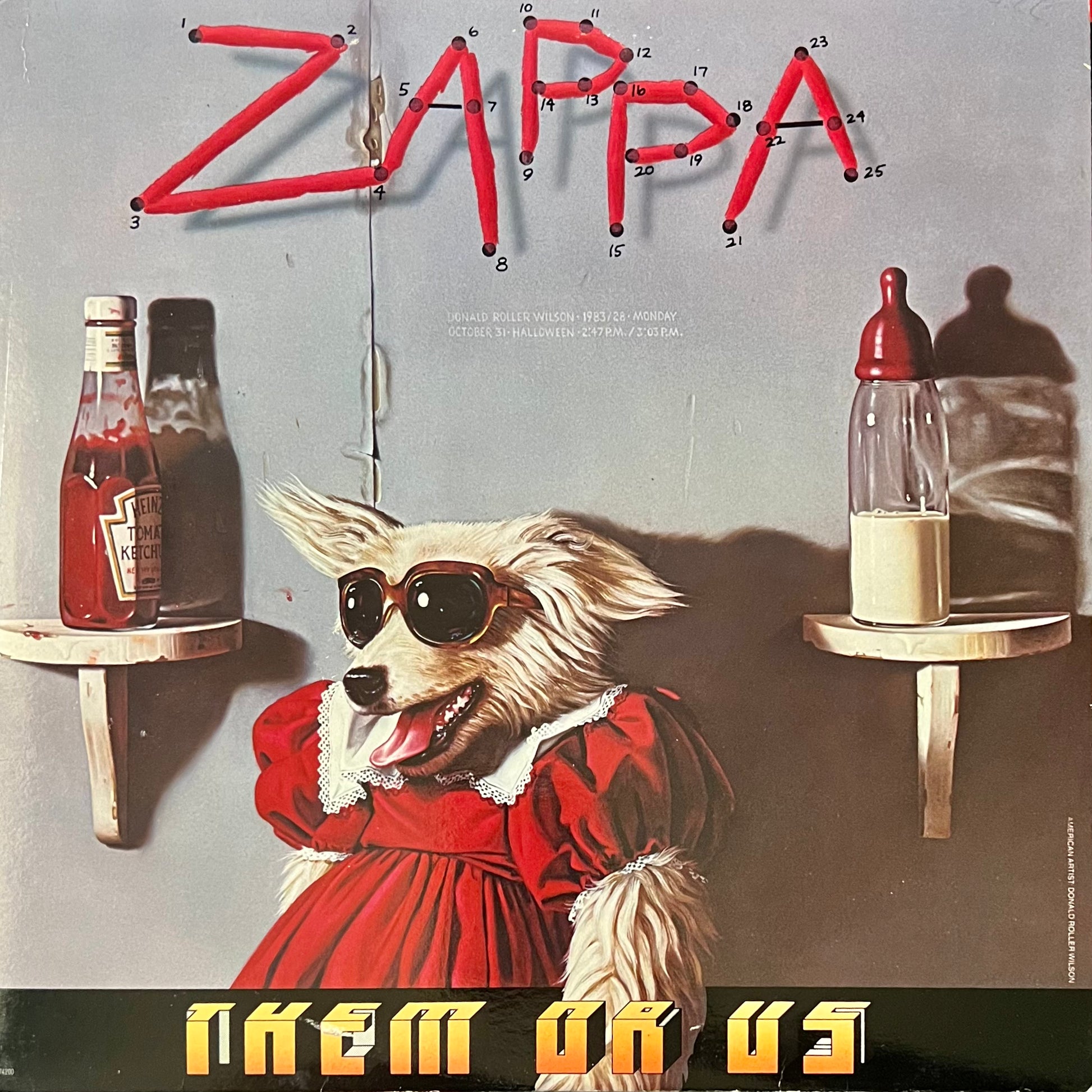 Released in October 1984, Them or Us is Frank Zappa's last studio rock album (unless one counts Thing-Fish). It contains a little of everything for everyone, but most of all it has that cold and dry early-'80s feel that made this and other albums like The Man From Utopia and Frank Zappa Meets the Mothers of Prevention sound dated pretty quickly. The record begins and ends with covers. "The Closer You Are" is one of those '50s R&B tunes the man loved so much. As for the Allman Brothers' "Whippin' Post," it answered a request from an audience member in Helsinki back in 1974 (go figure). In between one finds the usual offensive lyrics -- the cliché-ridden "In France," the sexually explicit "Baby, Take Your Teeth Out." Crunchy guitars are found in "Ya Hozna" and "Stevie's Spanking" (named after Steve Vai, playing guitar in it, too), arguably one of Zappa's best straightforward rock songs from that period. "Sinister Footwear II" and "Marqueson's Chicken" represent an '80s update of complex instrumental pieces the likes of "RDNZL." "Planet of My Dreams" salvages a bit from the never-produced stage play Hunchentoot (the scenario of which was incidentally published in a book titled Them or Us released at the same time). Finally, "Be in My Video" mocks David Bowie's hit "Let's Dance" and the MTV generation, still in its infancy stage at the time.