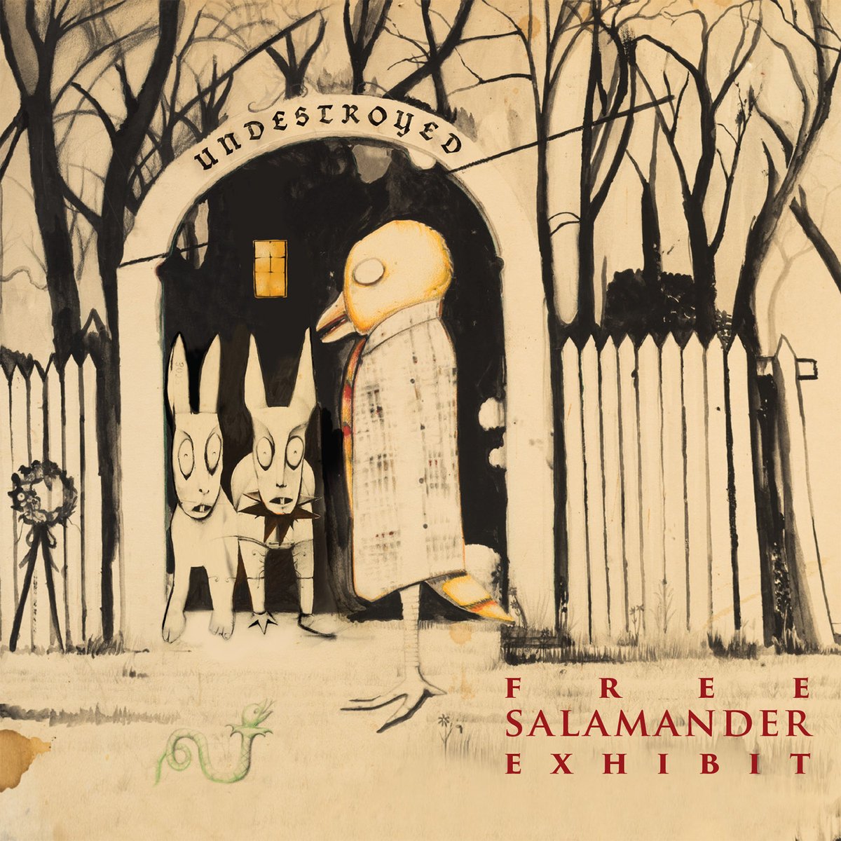UNDESTROYED delivers a genre-damning assault of clarity, confusion, tottering riffage and apocalyptic joy to the listener. What is probably most distinguishing is that, Lo and Behold, Free Salamander Exhibit is a BAND in the truest sense of the word. A very real, well-honed, cared-about and labored-over band that builds upon its ancient and true chemistries with their new ideas. Forgoing any suggestion of cheap imaginary elaborations into digital simulacra, we are rewarded with Free Salamander Exhibit's preference for an arsenal of imaginative homemade musical instruments (in addition to their guitars, basses, and drums).