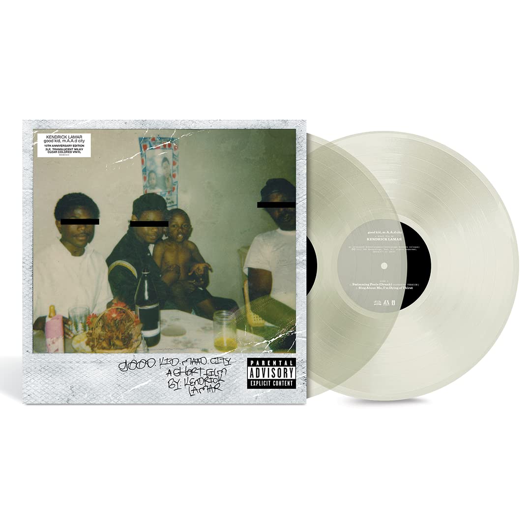 Limited Edition Indie Exclusive 10th Anniversary on clear milky color vinyl 2xLP / Kendrick Lamar -"good kid, m.A.A.d city (10th Anniversary Edition)" To celebrate the good kid, m.A.A.d city 10-year anniversary, Kendrick Lamar brings us exclusive new offerings. EXPLICIT / Made in Canada / Pressed in 2022 / Kendrick Lamar good kid, m.A.A.d city Good Kid, M.A.A.D City (stylized as good kid, m.A.A.d city) is the second studio album by American rapper Kendrick Lamar. The album was released on October 22, 2012, by Top Dawg Entertainment, Aftermath Entertainment, and was distributed by Interscope Records. The album serves as Lamar's major label debut, after his signing to Aftermath and Interscope in early 2012. It was preceded by the release of Kendrick's debut studio album Section.80 (2011), released exclusively through the iTunes Store independently. The album was recorded mostly at several studios in California with producers such as Dr. Dre, Just Blaze, Pharrell Williams, Hit-Boy, Scoop DeVille, Jack Splash and T-Minus, among others. Billed as a "short film by Kendrick Lamar" on the album cover, the concept album follows the story of Lamar's teenage experiences in the drug-infested streets and gang lifestyle of his native Compton, California. Upon it's release, Good Kid, M.A.A.D City received widespread acclaim from music critics, who praised it's thematic scope and Lamar's lyrics. Good Kid M.A.A.D City earned Lamar four Grammy Award nominations at the 56th Grammy Awards including Album of the Yea
