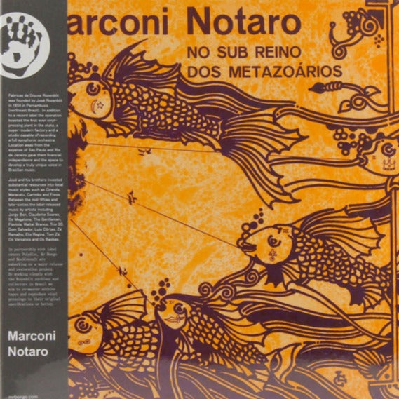 Limited 1st time reissued on vinyl remastered from original tapes. / Gatefold and Obi-Strip / Fatiado Discos present a reissue of Marconi Notaro's No Sub Reino dos Metazoários, originally released in 1973. No Sub Reino dos Metazoários is the first and only record by musician and poet Marconi Notaro, out of Pernambuco, Brazil. For years it was known that the master tape of No Sub Reino dos Metazoários had been lost during two floods that wrecked the Rozenblit Studios. Lots of equipment were damaged and plenty of material gone. However, what no one expected was that the tapes were kept on the highest shelves in the studio where the water did not reach with the thought of "equipment can be replaced, master tapes are unique." Notaro's daughters inherited and rescued the tape and made it available so that Fatiado Discos could release the first and remastered version from the original tapes since 1973. The lysergic highest moments come with nature elements textures as water and wind mixing together with the unmistaken sound of the Tricórdio Acústico -- which is a very unique instrument that Lula Côrtes brought himself from India and then adapted it with the help of a local luthier to the regional sound of the Brazilian northeast. The gatefold designed by Lula Côrtes is portrayed in this release and it also has its inner side designed by Cátia Mezel, apart from an extra insert with unpublished photos of Marconi provided by the musician's family. The album features Lula Côrtes, Zé Ramalho, and Robertinho de Recife is part of the holy trilogy of Psicodelia Nordestina amongst the equally mind-blowing Paebiru (1975) and Satwa (1973). Gatefold sleeve, includes insert.