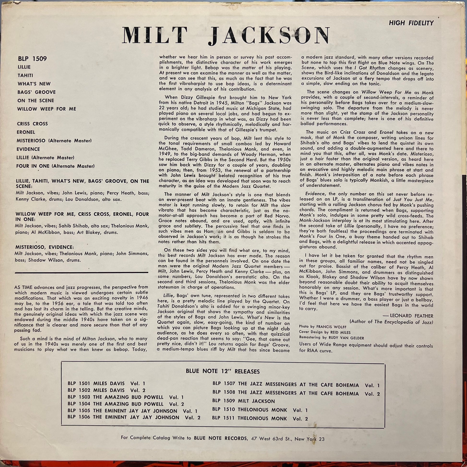 Compilation including tracks previously released on 78s and 10" LP Milt Jackson - Wizard Of The Vibes.