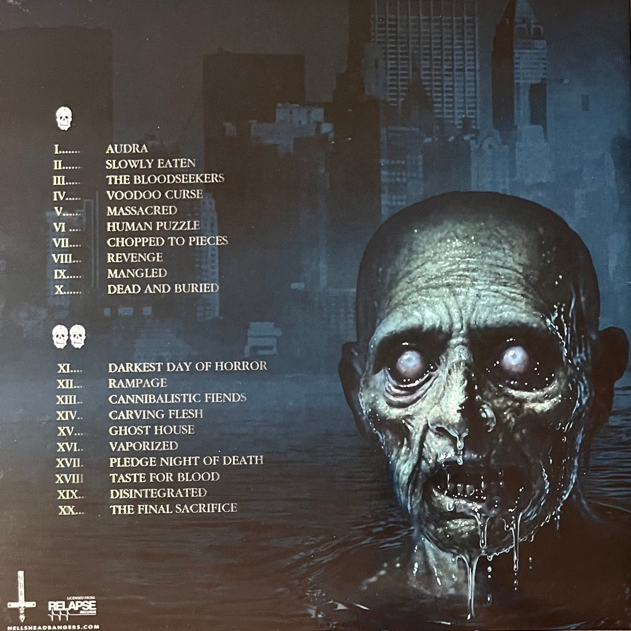 Fans of Friday the 13th Part VIII will appreciate Mortician's Darkest Day of Horror, which comes off as a sequel to a sequel in which the original premise, which wasn't very inspired in the first place, has been unceremoniously beaten to death with a shovel. This New York crew is like the walking undead adorning the cover of this typically splatter-caked opus: hack off its limbs and the zombie will still lurch forward, never straying from its brain-dead, single-minded purpose -- pure obliteration. -Allmusic