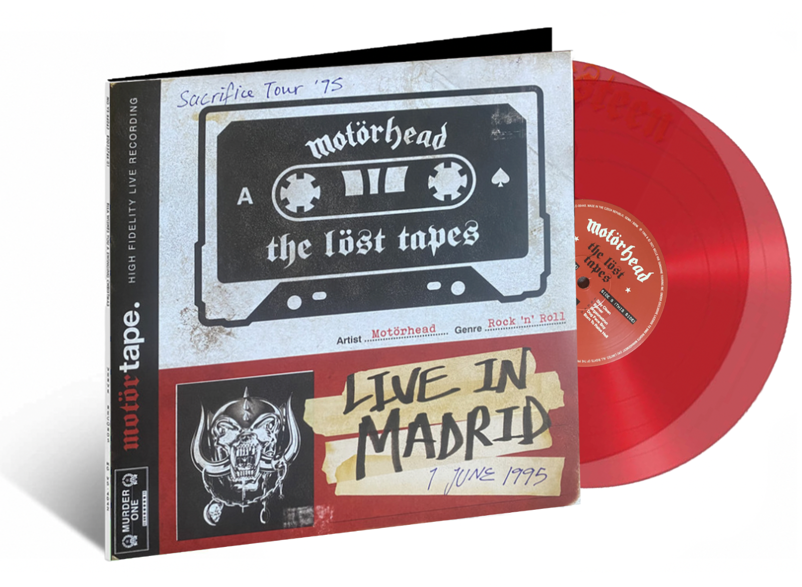 Hype sticker applied to shrink-wrap. / previously unreleased live album on double red vinyl / Previously unreleased live album from a set of tapes recently discovered in Lemmy’s archive. This show was recorded in Madrid Spain in 1995 on the Sacrifice tour and sees the band at their ferocious best. / The Löst Tapes Vol. 1 Live at Sala Aqualung, Madrid, 1st June 1995 /