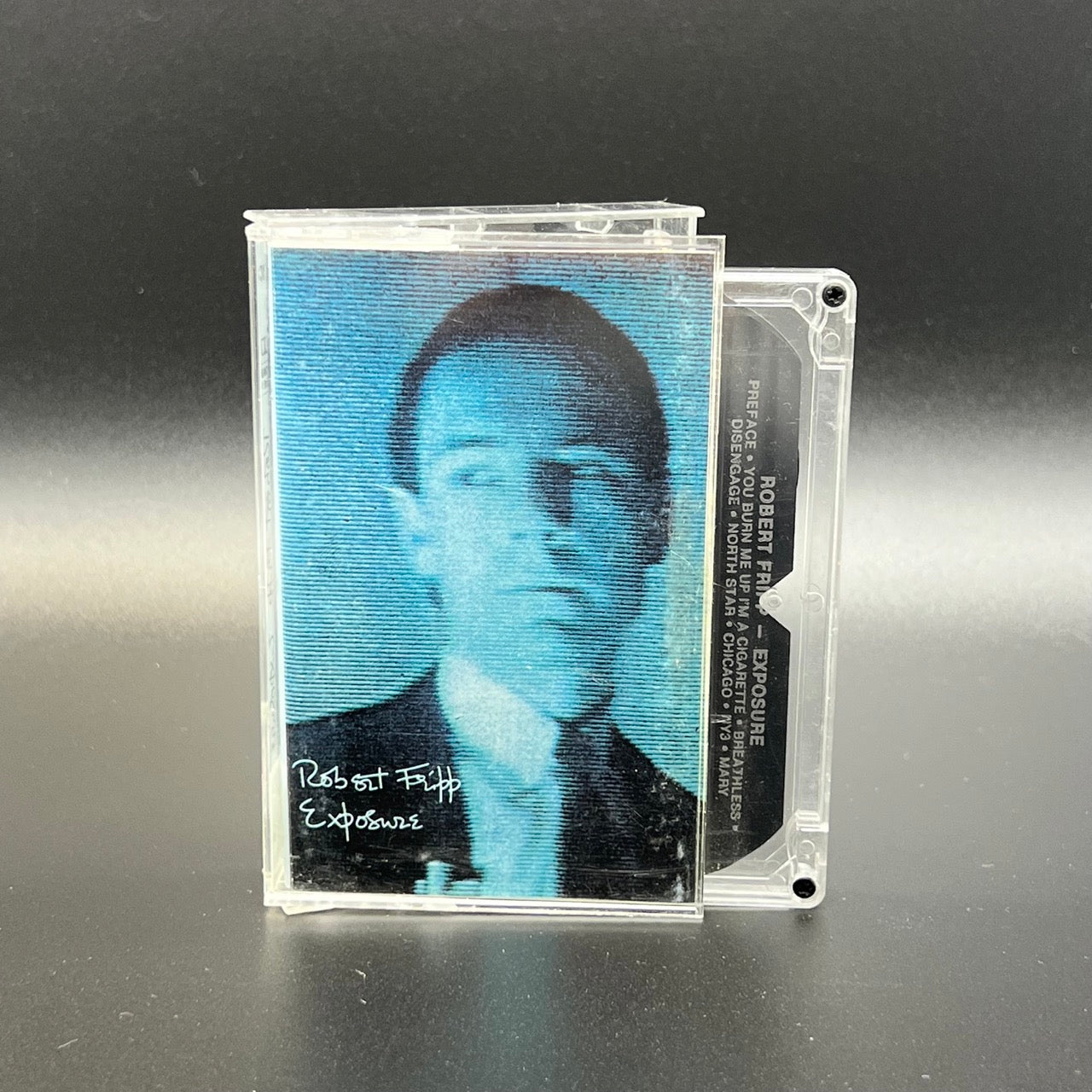 USED Tape Near Mint Media and artwork / Clear Tape / Repressed Pressed in 1985 / The term 'classic album' has been devalued somewhat through overuse, but if ever an album has proved worthy of the term it's Robert Fripp's 1979 solo debut Exposure. An invitation from David Bowie and Brian Eno in July 1977 resulted in his appearance as lead guitarist on Heroes, David Bowie's second 1977 album from his own golden year and marked Fripp's return to full time musician. Further work with Daryl Hall, Peter Gabriel, The Roches and Blondie (a version of "I Feel Love" sung by Debbie Harry was planned for inclusion on the album but never recorded), preceded the sessions. Recorded at the Record Plant in New York, Exposure was originally conceived as part of a trilogy alongside Daryl Hall's Sacred Songs and Peter Gabriel's second solo album (both Fripp produced). Exposure was delayed from it's scheduled 1978 release date by RCA's postponement of the release of the Hall album (that remained unissued until 1980) and Hall's then manager's insistence that some of his vocals be removed from the album. When the album finally appeared in 1979, it's mixture of songs, singers, instrumentals, snatches of speech, audio-vérité sound collages - all linked by an autobiographical/diary approach - presented a very different musician from that of the initial King Crimson period 1969-74.