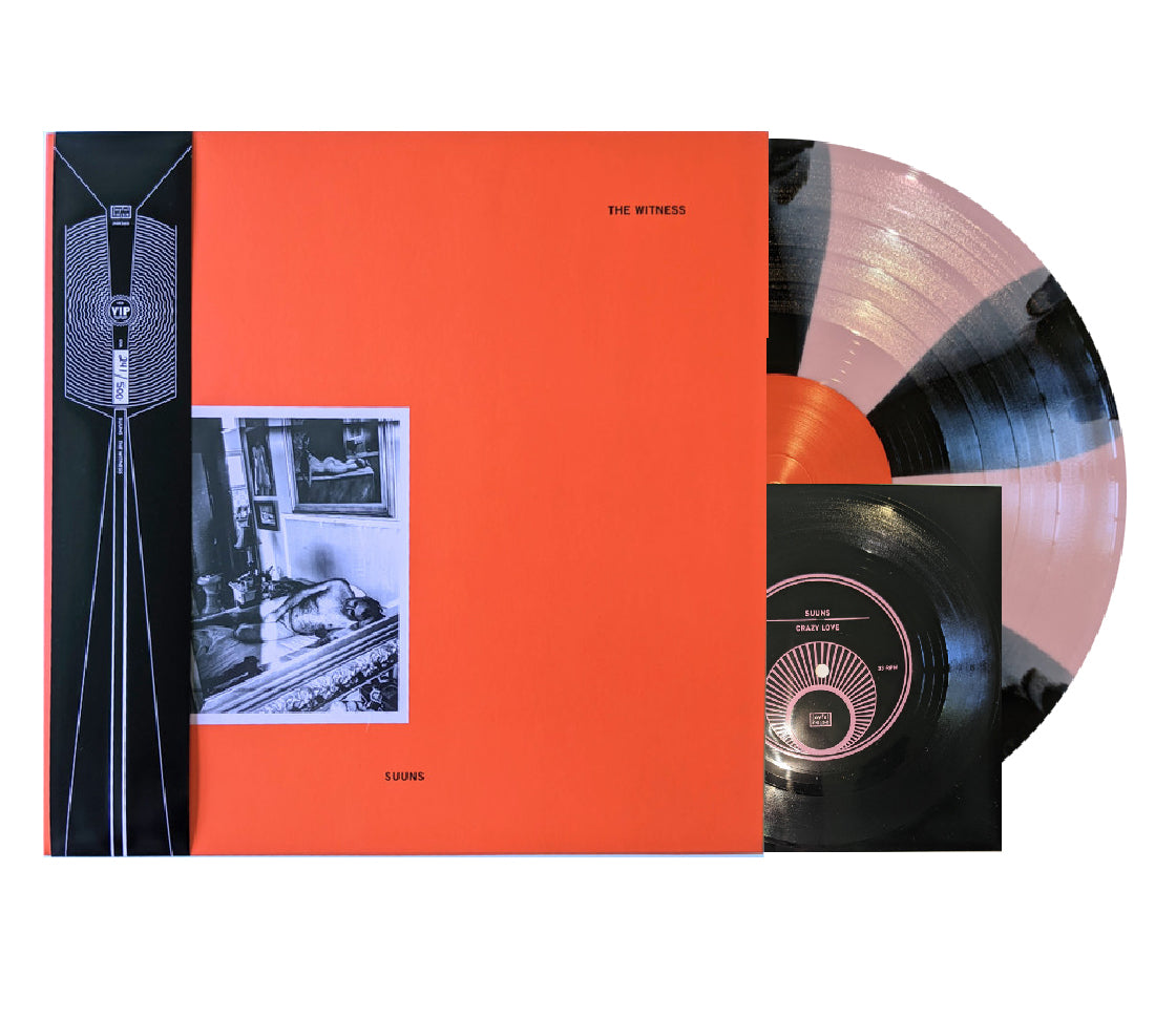 Limited Edition VIP Edition of 500 / Black and Pink Pinwheel color vinyl / Obi-Strip / Lathe Cut single / SUUNS’ fifth full-length album, The Witness – once again marks a shrewdly offbeat left turn. The tried-and-true narrative for a band of this nature is always to ‘move to the deep end’ or ‘out of the comfort zone’. In some ways, that rings true on The Witness, though one could say these eight movements show SUUNS in their most comfortable, candid state. Self-recorded and self-produced over the majority of 2020 – a year of strife, solitude, and reflection –, The Witness finds the band holding a magnifying glass over their default state of playing and performing. It’s a swift departure from the previous album Felt, which exults in harvesting haphazard ideas in their embryonic, demoed versions as if letting loose a glorious firework display into the heavens. / Media Condition: Mint (M) Sleeve Condition: Mint (M) Album Release Year: 2021